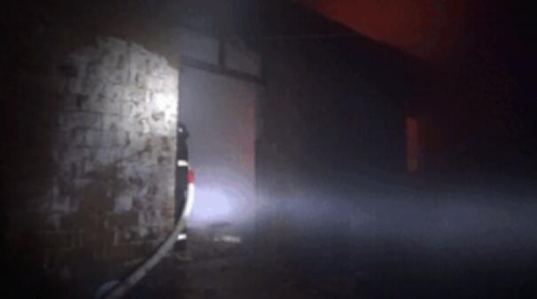 羊圈内,伴随火苗产生的大量浓烟,不时向上层蔓延,救援人员立即展开施救,利用水枪进行灭火,对火势进行控制。