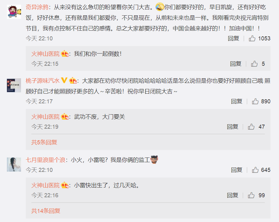 这条被置顶的微博文章还说,今天是元宵节,一个国人也许这辈子都难以忘记的元宵节。“愿万众一心战胜疯魔,让以后的每个日子,都是芝麻豆沙馅的甜。”