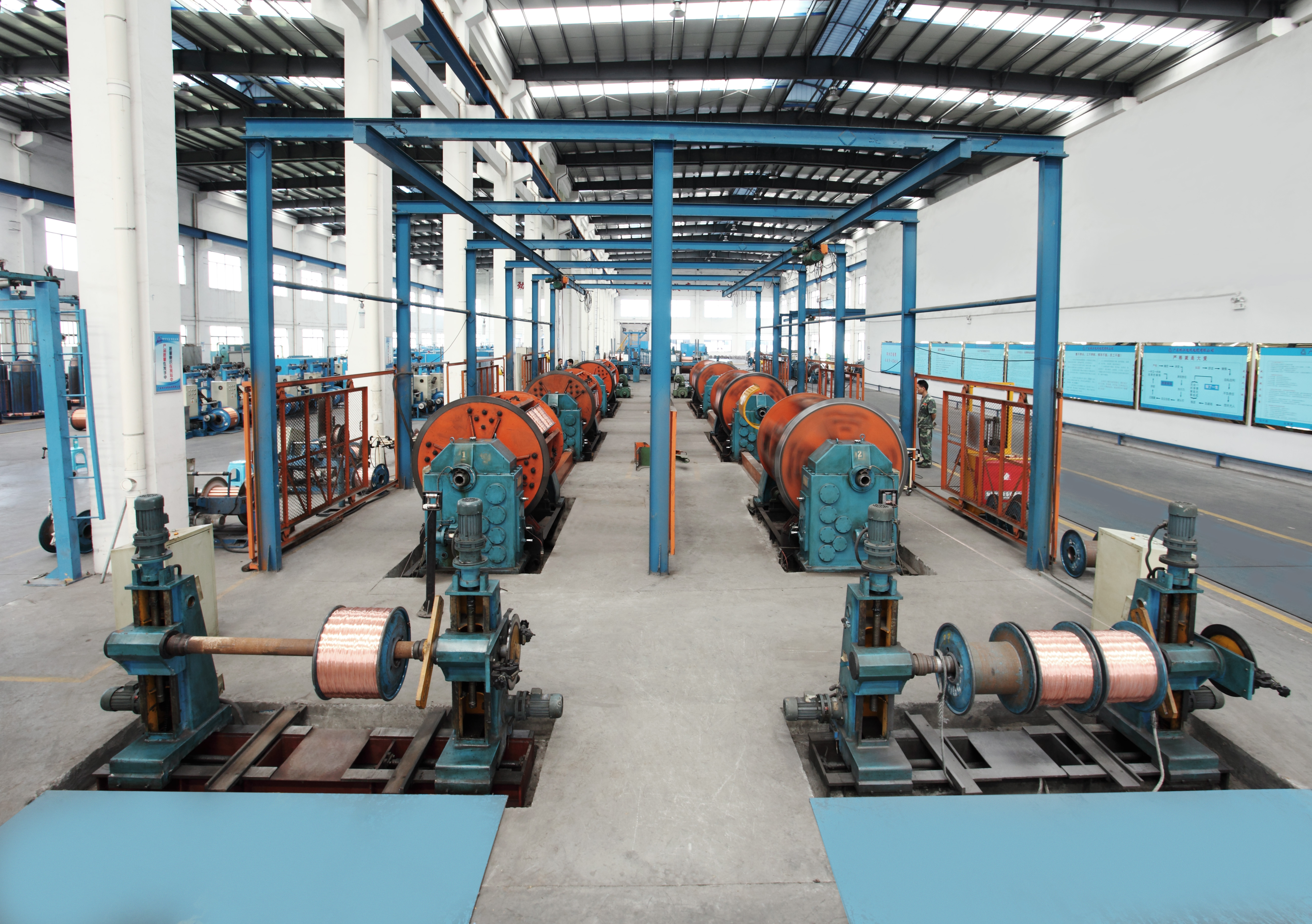 退火工序关键是杜绝铜丝的氧化。铜单丝在加热到一定的温度下,以再结晶的方式来提高单丝的韧性、降低单丝的强度,以符合电线电缆对导电线芯的要求。
